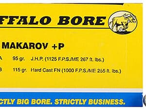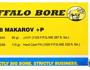 Buffalo Bore Ammunition 34A20 Personal Defense Strictly Business 9x18Makarov +P 95gr Jacket Hollow Point 20 Per Box/12 Case