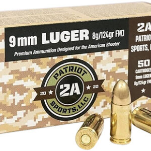 • PATRIOT SPORTS LLC P9MM124F 9mmLuger 124gr Full Metal Jacket 50 Per Box/20 Case