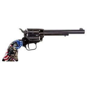 Heritage Mfg RR22B16USFLAG Rough Rider 22 LR 6 Shot, 16″ Black Oxide Steel Barrel, Black Oxide Zinc Alloy Frame, Black Oxide Cylinder, US Flag Grip, Manual Safety, Exposed Hammer