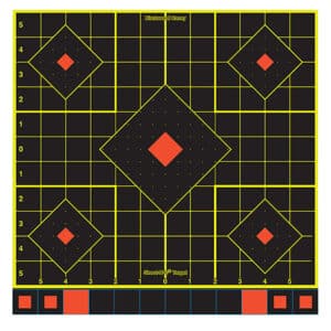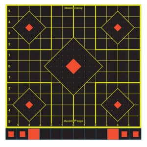 Birchwood Casey 34653 Shoot-N-C Reactive Target Self-Adhesive Paper Black/Yellow/Red 12″x18″ Oval Silhouette 100 Pack