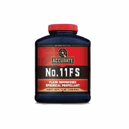 Accurate 0552 No. 11FS Handgun Reloading Powder 1 LB CAN No. 11FS is intended for full-power loads in magnum handguns and smaller capacity rifle cartridges. This double-base spherical propellant was developed with an eye toward personal defense and incorporates a flash-suppressant that substantially reduces muzzle signature in low light conditions. In the .300 Blackout, No. 11FS is capable of extremely high velocities with lighter bullets, making it the best propellant choice for shooters looking to maximize downrange performance. Made in the USA Bulk Density(grams/cc) +/-5.5% 0.635 VMD(cc/grams) 1.575 Bulk Density(grains/cc) +/-5.5% 9.800 VMD(cc/grains) 0.102
