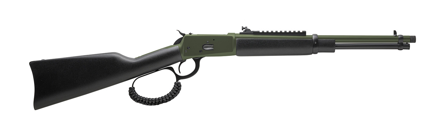Brand: Rossi / Braztech Model: 92R Caliber : 44 Mag Capacity : 8 Rounds Front Sight : Drift Adjustable Rear Sight : Peep Hole Sight on picatinny rail Action Type : Lever Action Barrel Length : 16.50 In. Overall Length : 33.70 In. Overall Height : 7.80 In. Overall Width : 1.50 In. Overall Weight : 97.80 Oz. (Unloaded) Twist Rate : 1:30″ RH Grooves : 6 Stock Material : Synthetic Frame Material : Alloy Steel Frame Finish : Moss Green Barrel Material : Alloy Steel Barrel Finish : Black Safety : Thumb Safety