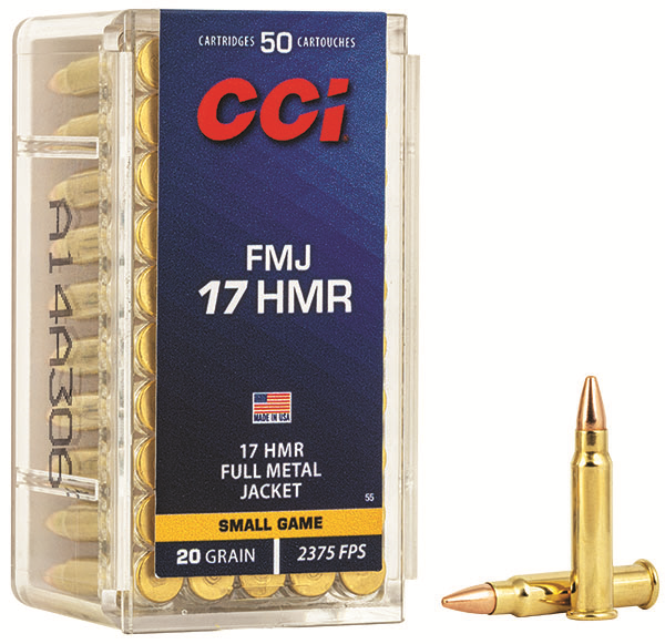 Description ….: CCI SMALL GAME AMMUNITION Caliber ……..: .17HMR Primer ………: Bullet Weight ..: 20 GRAIN Bullet Type ….: FULL METAL JACKET Muzzle Velocity : 2375 FEET PER SECOND Box Count ……: 50 ROUNDS Item # ………: 0055