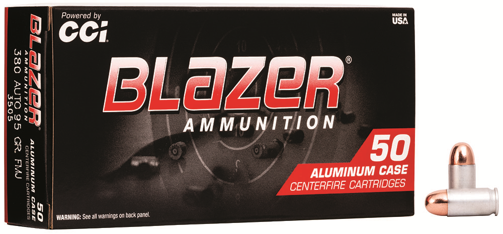 Description…… CCI BLAZER Caliber………. 380 ACP Bullet Weight…. 95 GRAIN Bullet Type…… TOTAL METAL JACKETED Bullet Diameter.. .355 Muzzle Velocity.. 945 FEET PER SECOND Quantity……… 50 RDS.PER BOX…20 BXS.PER CASE