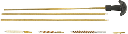 DAC Technologies 7-piece universal .17 to .22 caliber rifle & pistol cleaning kit features: three solid brass rods (.17cal. diameter), one .17 cal wire brush, one .17 cal mop, one .22 cal wire brush. Its durable clamshell packaging can be used for storage when the kit is not in use.