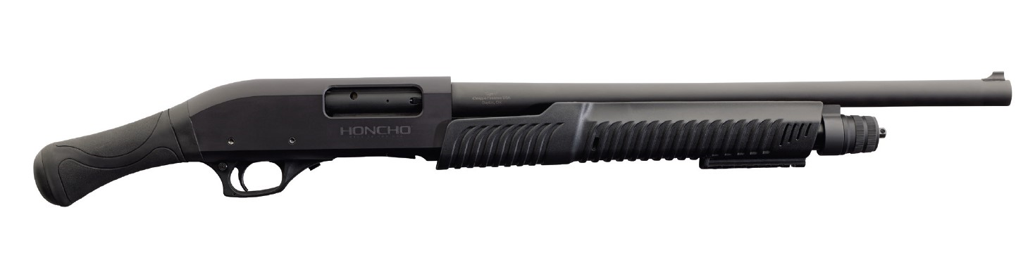 Honcho Tactical Pump-Action (Synthetic) 12GA/18.5″BBL Made in USA Brand: Charles Daly Sku : 930.363 Gauge : 12GA-3″ Action : Pump-Action Barrel : 18.5″ Finish: Matte Black Chokes : N/A Extraction : Automatic Capacity & Feed : 5+1, Magazine Tube Trigger System : Single Stock & Forend : Rubberized Bird’s Head Grip – Black Specs : N/A Sights : Front Safety : Manual Weight & Length : 5 lbs., 31.5″ Material: Aluminum Receiver, Steel Barrel Ships Loose: Manual + Ambidextrous Sling Attachment Packaging : CD Box, Master Pack of 5 Notes : Receiver Drill & Tapped