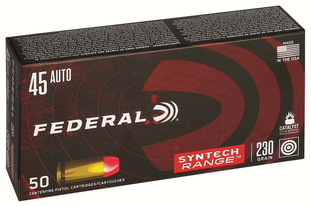 Federal AE45SJ1 Centerfire Handgun Ammunition 45 ACP 230 Grain Total Synthetic Jacket 50 rounds per box 10 boxes per case 128 cases per pallet