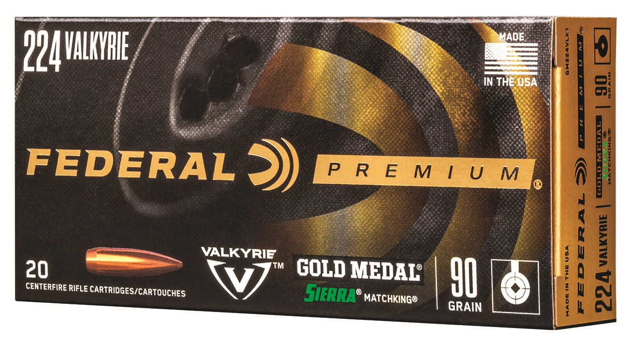 Federal GM224VLK1 Gold Medal Centerfire Rifle Ammunition 224 Valkyrie 90 Grain Sierra Matchking Boat Tail Hollow Point 20 Rounds Per Box