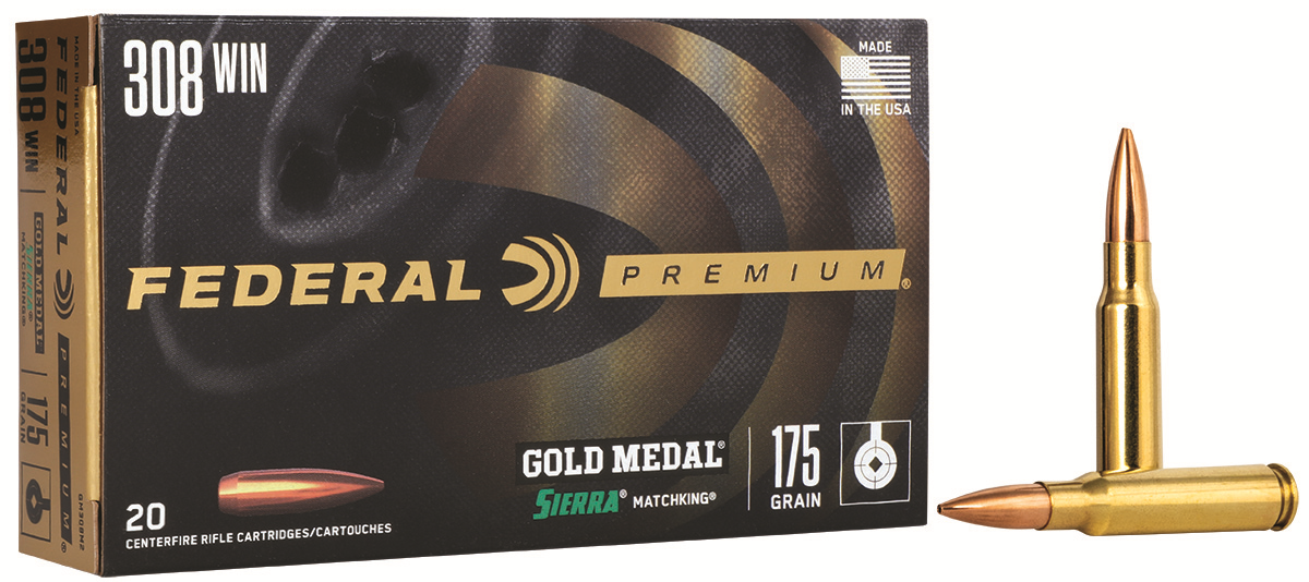 Description ….: FEDERAL PREMIUM GOLD MEDAL RIFLE AMMUNITION Caliber ……..: 308 WINCHESTER (7.62X51MM) Bullet Diameter : Bullet Weight ..: 175 GRAIN Bullet Type ….: SIERRA MATCHKING BOAT TAIL HOLLOW POINT Muzzle Velocity : 2600 FPS Box Count ……: 20RD Item # ………: GM308M2