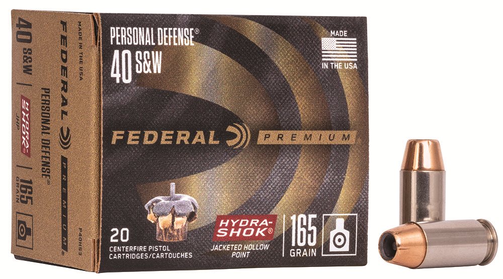 Description…… PREMIUM HYDRA SHOK Caliber………. 40 S&W Bullet Weight…. 165 GRAINS Bullet Type…… HYDRA-SHOK JACKETED HOLLOW POINT Bullet Diameter.. .400 Muzzle Velocity.. 980 FEET PER SECOND Quantity……… 20 RDS. PER BX…25 BXS. PER CASE