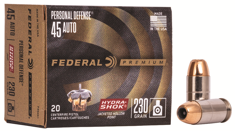 Description……..PREMIUM HYDRA-SHOK Caliber…………45 ACP Bullet Weight……230 GRAINS Bullet Type……..HYDRA-SHOK JACKETED HOLLOW POINT Bullet Diameter….451 Muzzle Velocity….850 FEET PER SECOND Quantity………..20 RDS. PER BX…25 BXS. PER CASE