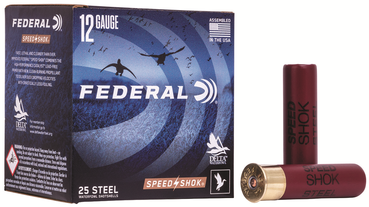 Description ….: FEDERAL SPEED-SHOK WATERFOWL SHOTSHELL Caliber ……..: 12 GAUGE Shell Length …: 3 1/2″ Muzzle Velocity : 1500 FEET PER SECOND Shot Charge ….: 1 1/2 OUNCES Shot Size ……: BB Box Count ……: 25 Item # ………: WF134 BB