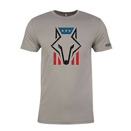 Foxpro T-shirt 60% Combed ring-spun cotton/40% Polyester construction. Durable rib neckband. Printed with soft-touch ink. FOXPRO Foxhead Flag artwork on front of t-shirt.