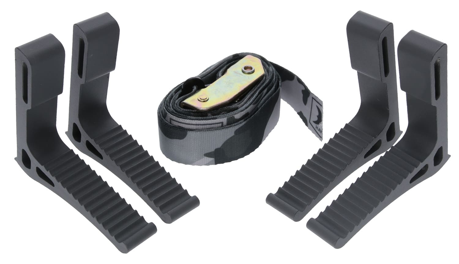 Hawk Monkey Bar Steps are perfect for mobile hunting. Features weight per step is 3 ounces and rugged tread for superior grip and traction. Includes 1″ x 68″ long pull tight cam buckle strap and 4 steps.