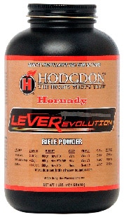 Hodgdon Powder Company and Hornady Manufacturing have teamed together to answer the frequently asked reloading question; “Can I buy the powder used in Hornady LEVERevolution factory ammunition?” Yes, this is the same spherical propellant used in Hornady’s innovative and award winning high performance factory ammunition. This smokeless, fabulous propellant meters flawlessly and makes lever action cartridges like the 30-30 Winchester yield velocities in excess of 100 fps over most published handloads, with even greater gains over factory ammunition. Other cartridges include the 35 Remington, 308 Marlin Express, 338 Marlin Express and the 25-35 Winchester. The list of cartridges and bullets is limited with this highly specialized powder.