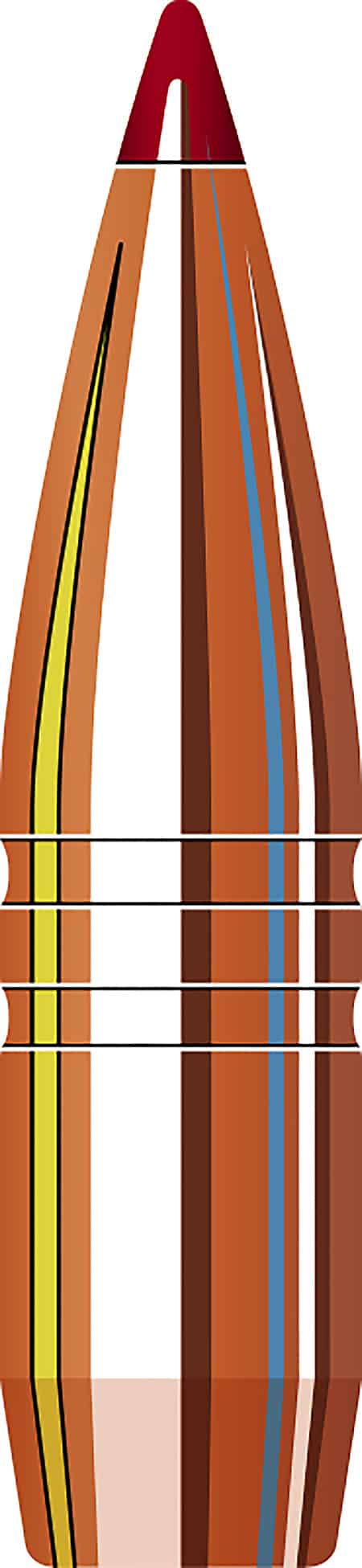 The CX (Copper alloy eXpanding) bullet from Hornady represents the most advanced monolithic hunting bullet on the market. Its optimized design offers extended range performance, greater accuracy, high weight retention, and deep penetration. The Heat Shield Tip is made of a heat resistant polymer that resists aerodynamic heating and provides a consistently high BC for the bullet’s entire flight path.