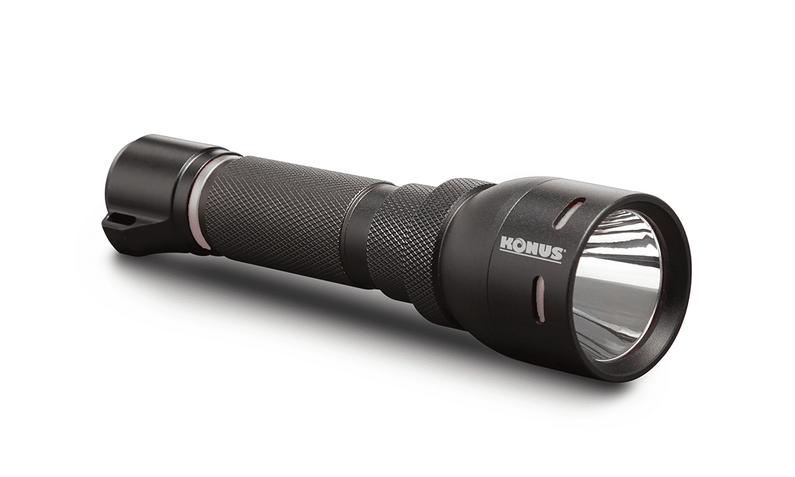The Konus Rechargeable Tactical Flashlight w Remote Switch can be handheld or mounted on any Weaver/Picatinny rail thanks to the special mounting ring with which it is complete. tIs maximum intensity is 1000 lumens and it works with a rechargeable 18650 battery. Its further accessories are a remote control and a USB socket charger. It is completely built in metal to increase recoil resistance and with a very competitive price.