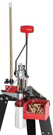 The Lee Deluxe Automatic Processing Press allows you to deprime, primer pocket swage, bulge bust or size cast bullets as fast as you can operate the lever. The upper die carrier is counter balanced by a centrally mounted coil spring, while the counter balance prevents the handle from falling and pinching a finger. The top carrier and base are machined to accept Lee Breech Lock bushings, so they will accept standard 7/8-14 dies of any manufacture. The press uses standard press shell holders from most manufactures. The X-press shell holder gets its speedy operation which allows the case to pass through the shell holder after the operations are performed. Jaws automatically open and grasp the bullet or case. They then rapidly position the case or bullet into the operating position. The press is a “frameless” design with nearly all the forces going directly to the dies through the steel linkages rather than through the frame. Includes the Automation package, three most popular X-press shell holders (2, 4 and 19), pline drive breech lock bushing and universal type shell holder quick-change adaptor, feed tubes, tube supports, risers and case slider. It even includes the 22-caliber bullet feed jaws.
