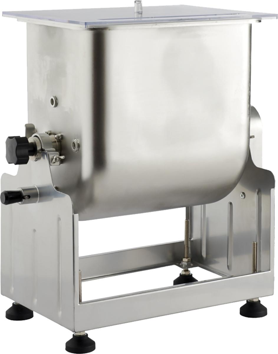 LEM's Big Bite Tilt Mixer utilizes three tilt positions for easy unloading filling and storage. The meat tub detaches for easy cleaning. The gearbox includes roller bearings and step gear providing powerful torque for paddles to thoroughly mix the meat. The meat tub has three locking positions: 90° for easy unloading 115° easy filling and 180° for storage. The feet adjust for height and swivel to adjust to uneven surfaces. A clear acrylic PMMa cover and crank handle are included. Grinder/Motor is NOT included.The 25 lb. mixer tub measures 10 3/4" L x 10" W x 12" H. This 25 lb. mixer works with our #8 Big Bite Meat Grinder or larger.