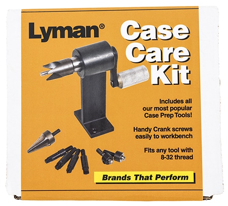 The utility crank accepts most Lyman accessories and any tool with an 8-32 thread. Kit includes both large and small primer pocket reamers, cleaners, uniformers and inside and outside deburring tools.