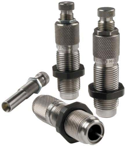 The Lyman Precision Pistol Carbide 3-Die Set includes the two-step neck expanding die a one-piece decapping rod made from hardened steel and the Tungsten Carbine sizing die. With the Lyman Precision Pistol Carbide 3-Die Set you can quickly and accurately size and seat your pistol cases for reloading.