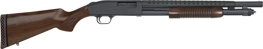 Brand: Mossberg Model: Model 590 Retrograde Series Type: Shotgun: Pump Action Caliber: 12 Gauge Finish: Matte Blue Action: Pump Action Stock: Walnut, Corn Cob Forend And Stock Sight: Bead Barrel Length: 18.5 Overall Length: 39 Weight: 7 lbs Capacity: 6+1 Safety: Ambidextrous Tang Safety Receiver: Matte Blue Chamber: 3 Chokes: Cylinder Bore Butt Plate: Black Rubber Features: Heat Shield