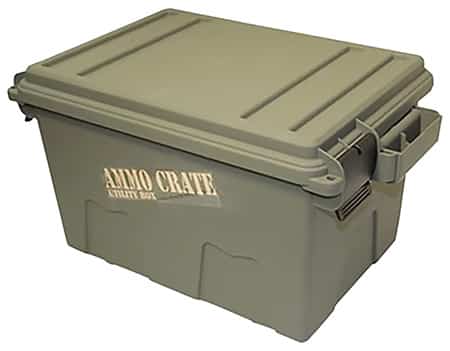 The Ammo Crate Utility Box is perfect for storing shooting, hunting, or survival gear; but it can also be used as a boater’s dry storage box, first aid, safety and RV camper storage container. It’s two extra strong handles make it easy to carry up to 65 pounds of gear. Designed to be stacked high, using molded-in stacking ridges. Four tie down points for ATV attachment. Utilizing MTM’s tongue and groove O-Ring seal system for a superior water-resistant dry storage. Double padlock tabs along with two strong latches make these ammo crates the perfect solution to so many storage needs.