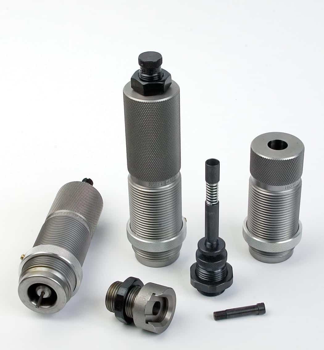 Included in the RCBS AmmoMaster .50 BMG Die Kit are the full-length sizer die the trim die the roll crimp seater die the .50 BMG ram priming unit and the .50 BMG shell holder. Like all of RCBS