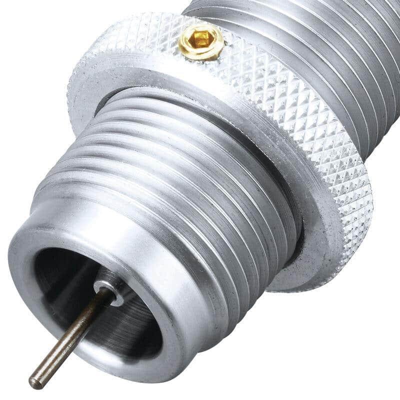 The sizer die sizes the body of the case a little smaller in diameter compared to that of a standard die and boasts a special mandrel design. After making a first trim of 0.02 inches no additional trimming is required and the neck wall does not thicken as the length of the case is pushed back.