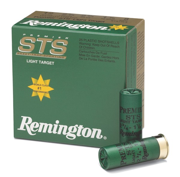 Description………… REMINGTON PREMIER STS TARGET LOADS Gauge……………… 12 Shell Length……….. 2 3/4″” Powder Dram Equivalent. 2 3/4 Shot Charge………… 1 1/8 OZ Shot Size………….. 9 Velocity…………… 1145 FEET PER SECOND Load Type………….. PREMIER STS LIGHT TARGET”