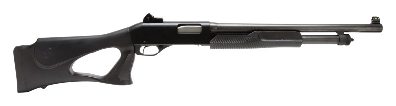 Brand: Savage Arms Model: 320 Security Thumbhole Pump Shotgun Type: Shotgun: Pump Action Caliber: 20 Gauge Finish: Matte Black Action: Pump Action Stock: Black Synthetic Thumbhole Sight: FT: Fixed RR: Adjustable Ghost Ring Barrel Length: 18.5 Overall Length: 39 Weight: 7.1 lbs Capacity: 5+1 Safety: Manual Receiver: Matte Black Chamber: 3 Chokes: Cylinder Butt Plate: Black Rubber Features: Rotary Bolt Design, Dual Slide Bars, Side Ejection