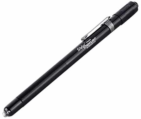 Streamlight’s Stylus PenLight is a bright, long-running LED penlight with a long battery life and goes anywhere you need it. It is machined from an aluminum case with non-slip knurled grip with a black anodized finish. It features momentary or constant on operation, red LED bulb and is water resistant. Perfect for tactical use and covert operation while preserving night vision. Includes three AAAA size alkaline batteries, pocket clip and glare guard.