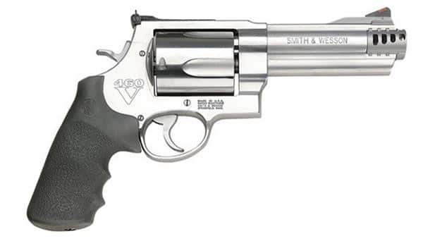 Brand: Smith & Wesson Model: Model 460V Type: Revolver: Double Action Caliber: 460 SW Magnum Finish: Satin Stainless Steel Action: Double Action Stock: Hogue Rubber Grips Sight: Ft: Red Ramp, Rr: Micrometer Click Black Blade Barrel Length: 5 Overall Length: 11.25 Weight: 62.5 oz Capacity: 5 Safety: Internal Lock Features: Fires 460S&W Magnum, 454Casull and 45Colt