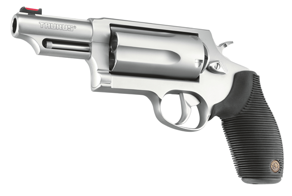 Brand: Taurus Model: 45-410 Judge Type: Revolver: Double Action Caliber: 45LC|410 Gauge Finish: Stainless Steel Action: Double Action Stock: Ribber Grip Sight: Front: Red Fiber Optic Rear: Fixed Barrel Length: 3 Overall Length: 9.5 Weight: 36.8 oz Capacity: 5 Safety: Taurus Security System, Transfer Bar Chamber: 3 Features: The Judge Stamped on the Barrel