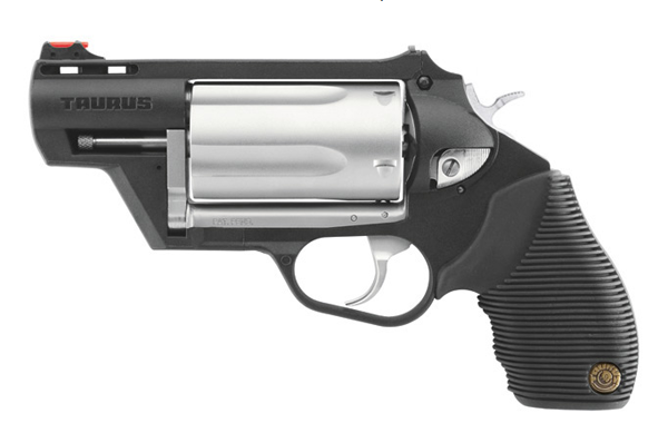 Brand: Taurus Model: 45-410 Judge Public Defender Type: Revolver: Double Action Caliber: 45LC/410 Gauge Finish: Stainless Steel Cylinder Action: Double Action Stock: Ribber Grip Sight: Front: Red Fiber Optic Rear: Notched Barrel Length: 2.5 Overall Length: 7.65 Weight: 23 oz Capacity: 5 Safety: Taurus Security System, Transfer Bar Receiver: Polymer Frame Chamber: 2.5