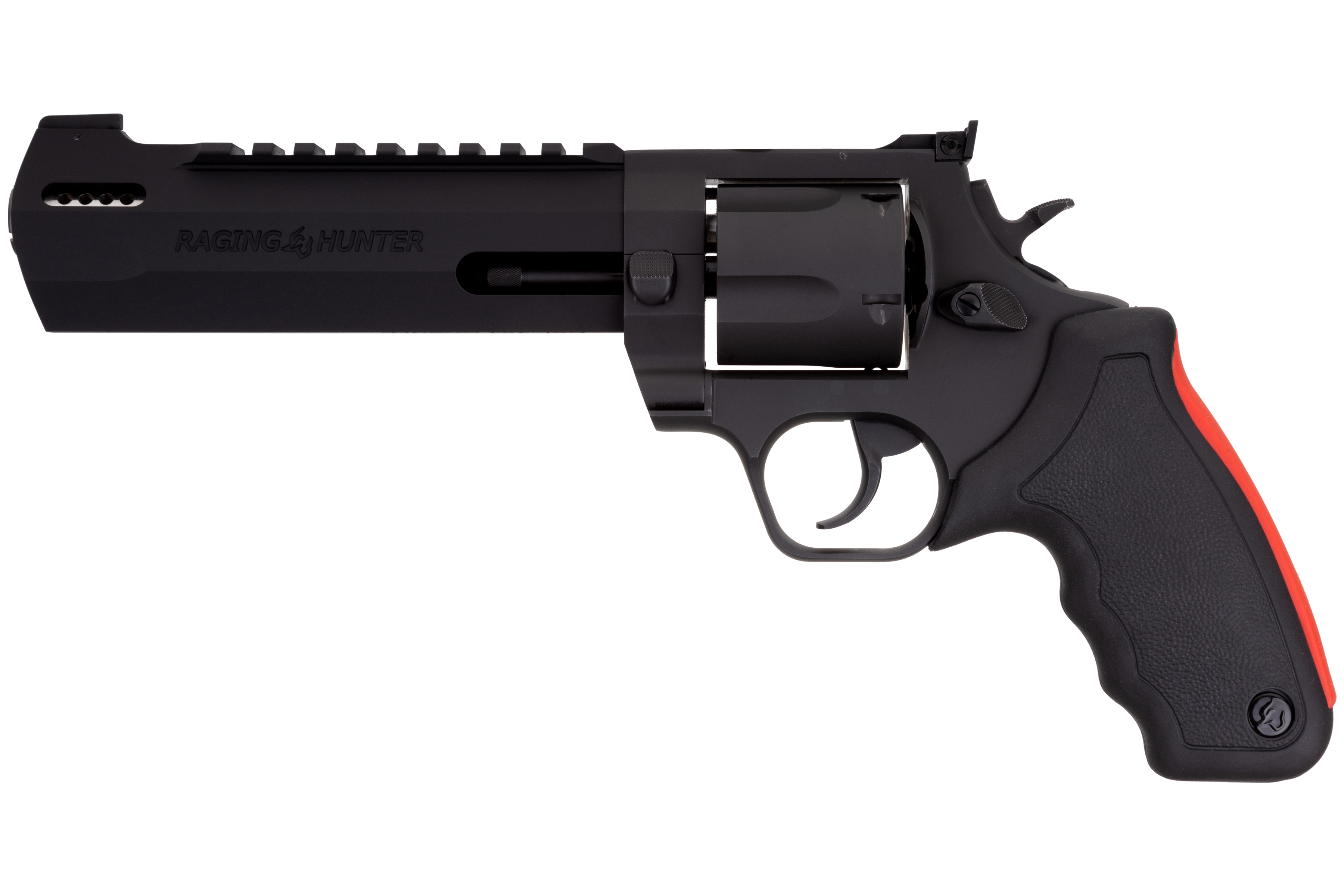 Brand: Taurus Model: Raging Hunter Type: Revolver: Double Action Caliber: 454 Casull Finish: Matte Black Action: Double Action Stock: Rubber W/ Cushioned Insert Grip Sight: Front: Fixed Rear: Adjustable Barrel Length: 6.75 Overall Length: 12.475 Weight: 55 oz Capacity: 5 Safety: Transfer Bar Features: Ported Barrel; Spurred Hammer, Picatinny Rail