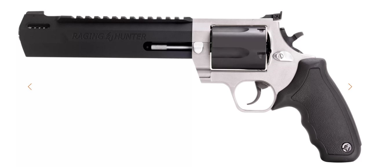 Brand: Taurus Model:Raging Hunter Type: Revolver: Double Action Caliber: 460 Finish: Black|Stainless Steel Action: Double Action Stock: Rubber W/ Cushioned Insert Grip Sight: Front: Fixed Rear: Adjustable Barrel Length: 8.375 Overall Length: 14.1 Weight: 55 oz Capacity: 5 Safety: Transfer Bar Features: Ported Barrel; Spurred Hammer, Picatinny Rail