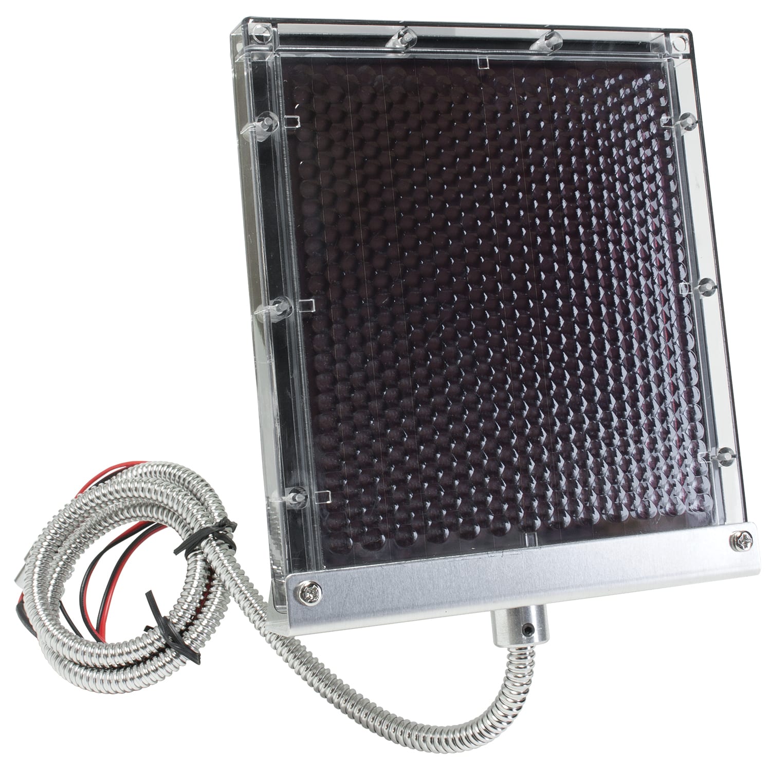 The 12V Edrenaline Solar Panel provides worry-free power to your deer feeder all season long. The heavy-duty, high-efficiency solar battery charger keeps batteries charged with advanced amorphous silicon solar technology. Easily clips in place to attach to your power control unit and adjusts to the best angle for optimum solar power. Compatible with 12V power control units.