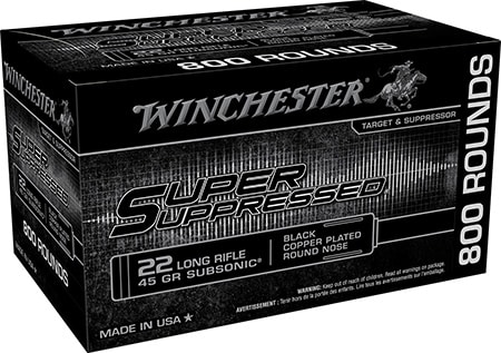 Winchester Ammo SUP22LRB Super Suppressed 22LR 45gr Black Copper Plated Round Nose 800 Per Bx/2 Case *Bulk