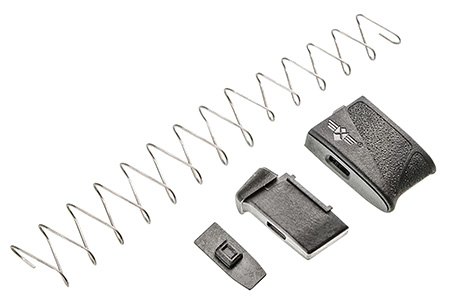 Fits M&P Shield 9mm and 9mm 2.0. For use with .40 S&W 1.0 and 2.0 use factory spring. Not compatible with Shield 9mm EZMP Shield mag extension adds 2 rounds to both the factory 7 and 8rd magazines. Uses factory sleeve when used with the 8rd magazine. Custom engineered spring. Optimal ergonomics and texture for recoil control. Adds 1rd and requires use of factory spring for Shield .40 S&W